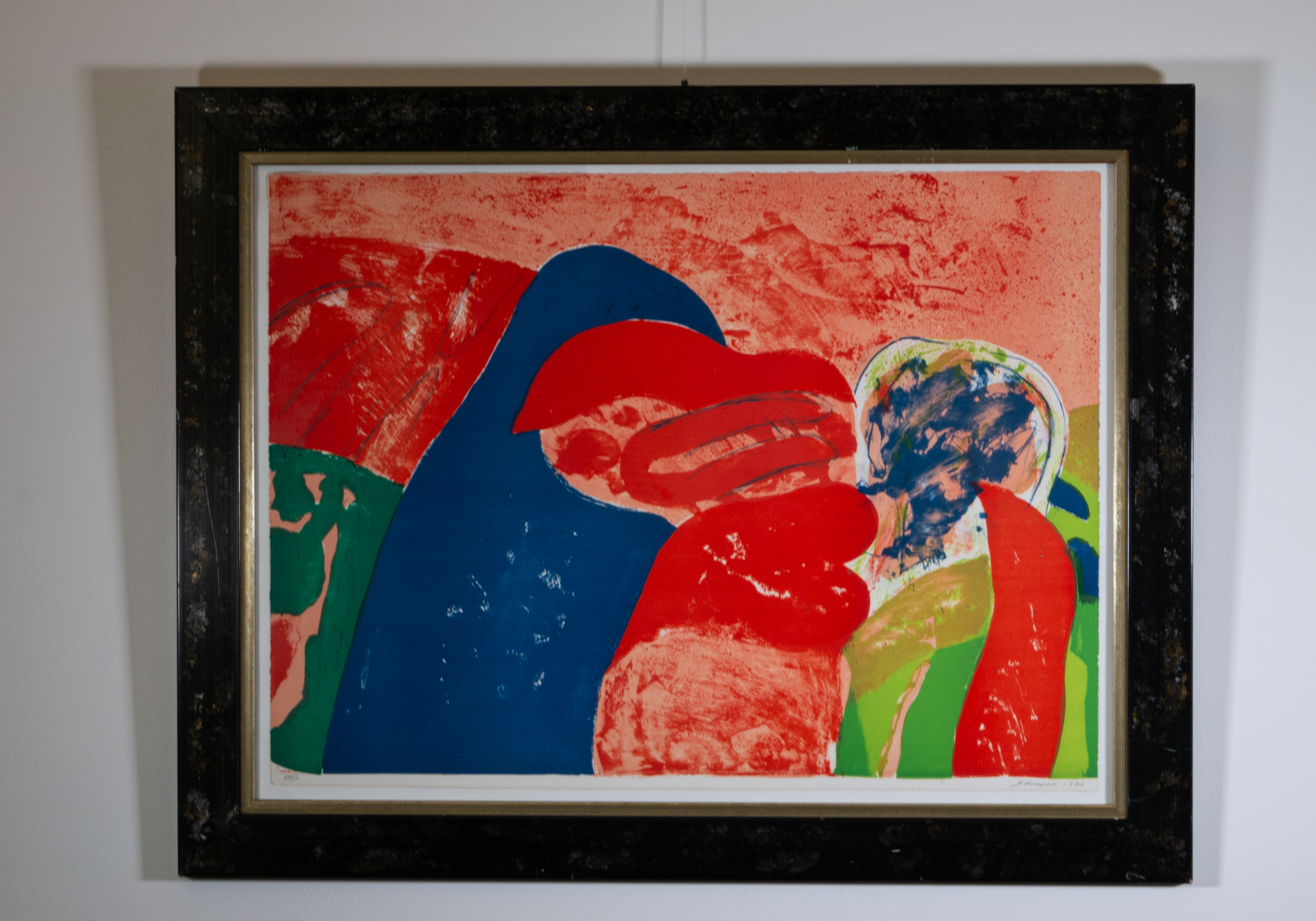 The mid-20th century saw a surge in abstract art, with many artists embracing the freedom to explore form, color, and expression without the constraints of realism. This piece likely engages with such themes, using abstraction to convey a sense of movement, energy, and perhaps a deeper, introspective narrative. It invites viewers to interpret its flowing forms and contrasting colors, making it a personal and emotional experience.