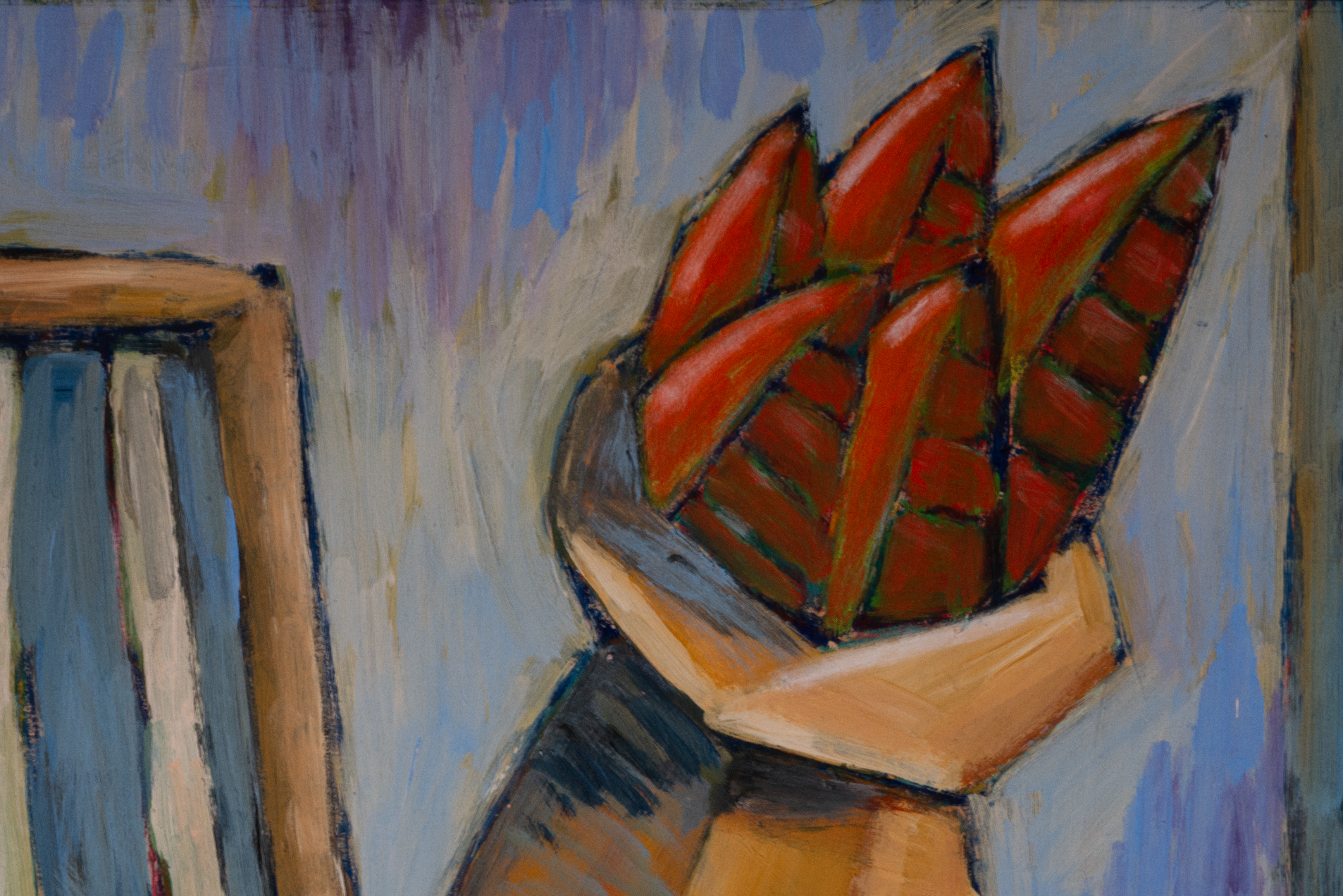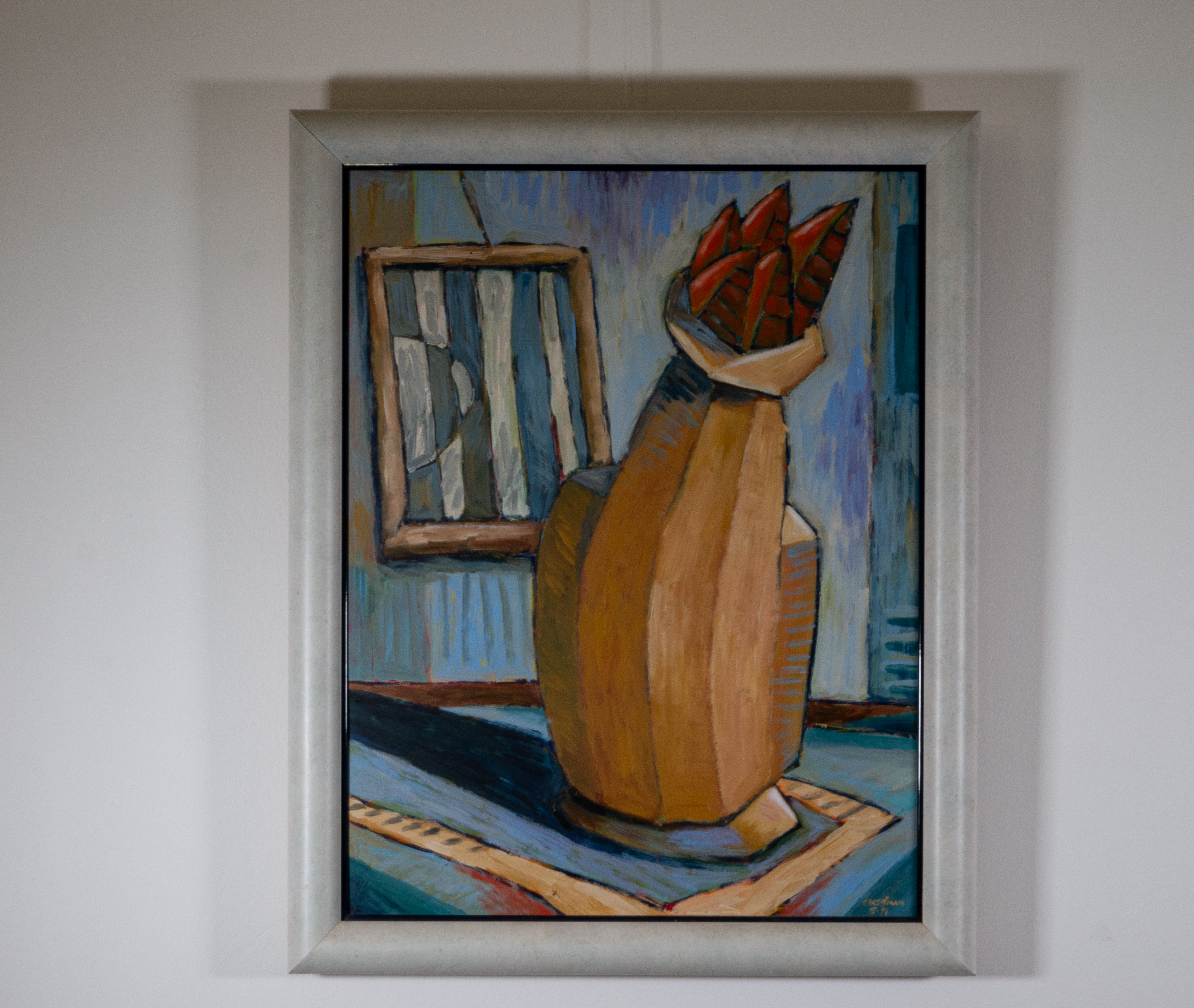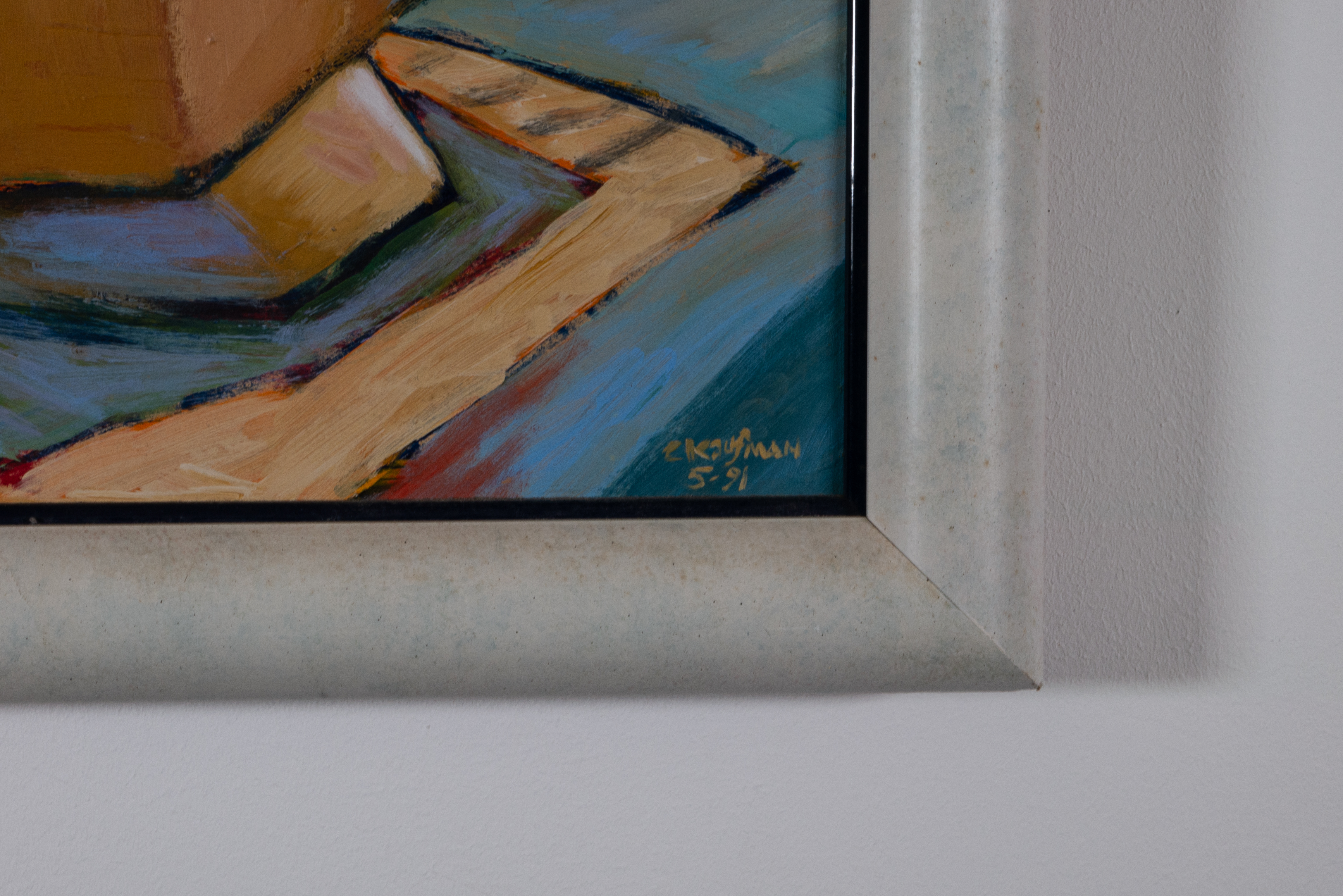 Created in 1991, this painting reflects a late 20th-century blend of traditional and modernist styles. By combining impressionist softness with cubist geometry, Kaufmann revisits early 20th-century movements, offering a modern reinterpretation. This approach captures the era's interest in merging classic art forms with contemporary abstraction, resulting in a piece that feels both nostalgic and current.